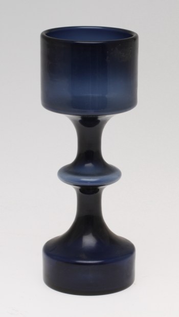 Snyggt blå vas signerad Kaj Franck Nuutajärvi Notsjö -63. Höjden är 17 cm. Utropet är 800 kr och auktionen går ut 2 juli.