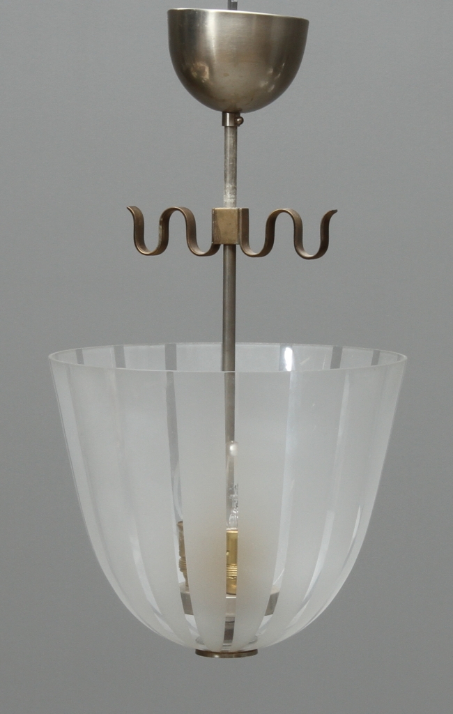 En snygg taklampa från 30/40-talet skulle jag kunna tänka mig. Höjden är 50 cm. Någon har bjudit 700 kr och auktionen avslutas 30 juni.