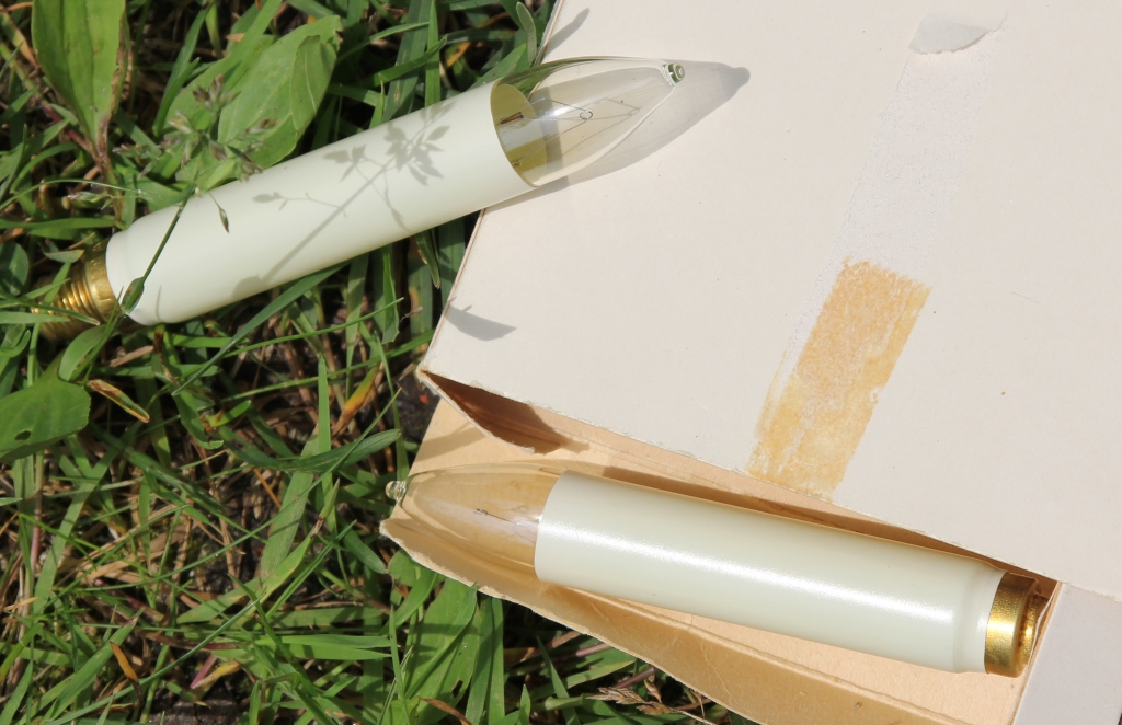 Så här ser den ut! Gillar den skarpt. Det är bara ett problem. Hela ljusen är lampor. Säljaren påstod att sådana fortfarande säljs. Är det verkligen så? Någon som vet? Visar här hur lamporna ser ut.