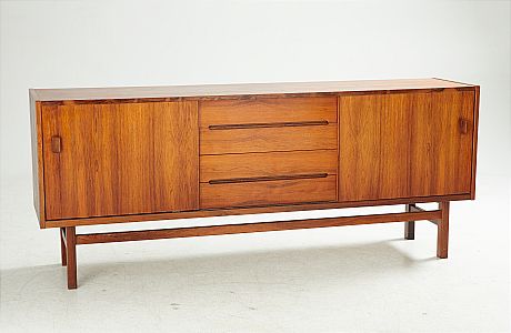 Ett snyggt sideboard av Nils Johansson. Det heter Arild och kommer från Hugo Troeds industrier. Möjligen ser jakarandan lite trött ut men det är kanske bilden. Sideboardet är 190 cm långt. Högsta bud just nu är 6000 kr men utropet är 8000 kr (6 juli).