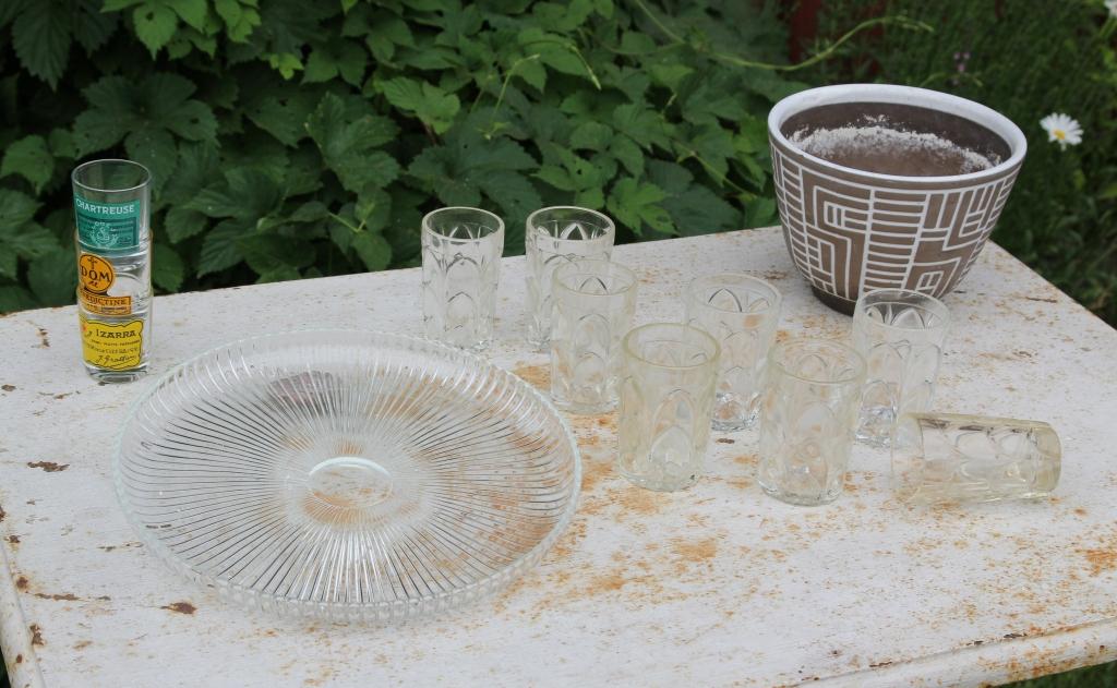 Åtta senapsglas som var med i ett reportage i senaste numret av Retro. Det var lite lustigt att jag skulle ramla på sådana! De är designade av Edvin Ollers 1937 för Slottssenap och gjordes av Limmared.