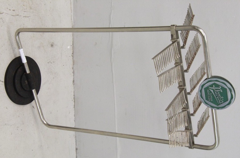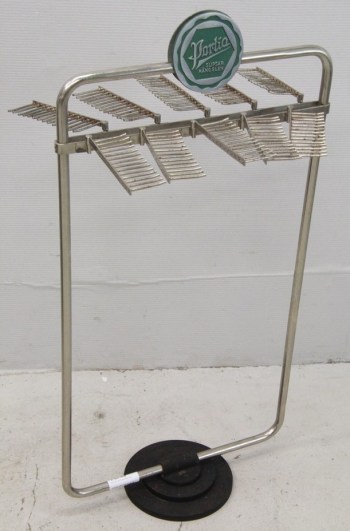Här är ett butiksställ för slipsar. Perfekt för den som har många! Bara snurra och välja på morgonen. Stället är 88 cm högt. (Inga bud lagda, 5 augusti).