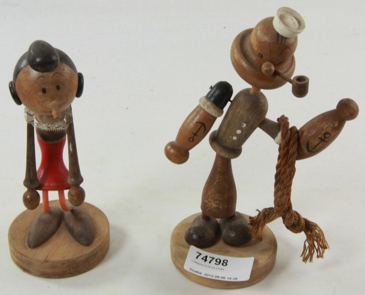 Lite charmigt par i trä. Karl-Alfred och hans fru Olivia. (70 kr, 6 augusti).