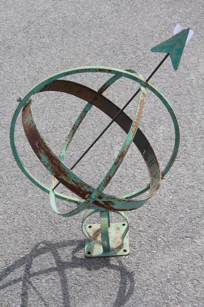 Här är en sak som jag tror är så fruktansvärt ute. Ett solur. Är det någon som drömmer om att ha ett sådant i trädgården? Ändå är det fint ärgat och patinerat.