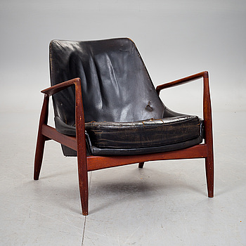Älskar denna fåtölj. En klar favorit. Det är Sälen av Ib Kofoed Larsen, för OPE Möbler. Så snygg. Teak och svart läder. Buden är uppe i 5800 kr (26 sep). Då ska man veta att lädret är jättetrasigt. Men om nån vill sälja mig två hela fåtöljer till bra pris så hör av dig!