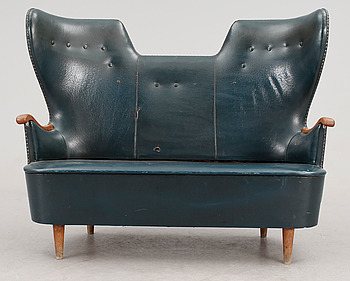 En helgalen soffa i lackerat konstskinn från 30/40-talet. Har aldrig sett något liknande! Buden är uppe i 1900 kr (26 sep).