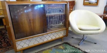Radiogrammofonmöbel med bardel 1950-tal samt snurrfåtölj 1960-tal