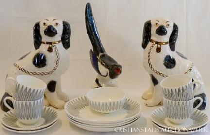 Kaffegods från Gustavsberg. Snygga Salix av Stig Lindberg. Man kanske kan få parhundarna på köpet?!