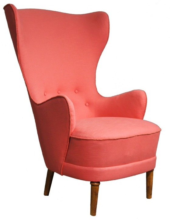 Anonym 50-talsfåtölj i kul design. Någon har bjudit 1300 kr för den. Kan nog bli väldigt snygg i ett annat tyg!