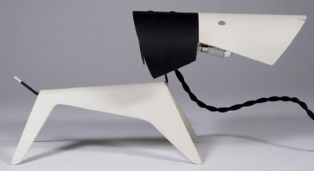 Bordslampa i form av en hund från den franska lamptillverkaren  Disderot. Den är formgiven av Jean Boris Lacroix på 1950-talet. Högsta bud just nu 900 kr.