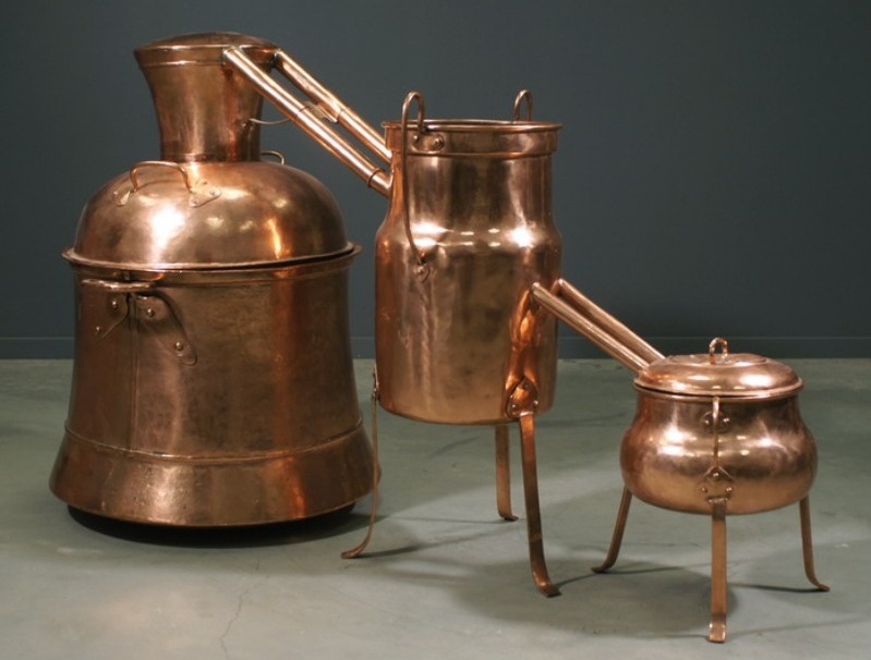 Till sist en häftig inredningspryl som jag trodde var förbjuden att saluföra. En vacker hembränningsapparat i blänkande koppar. Den är väl helt funktionsduglig, även om den är från 1800-talet,  för den som vill testa att göra sin egen julsnaps. Men det räcker gott att ha den hemma som en conversation piece. Högsta bud just nu 3200 kr.