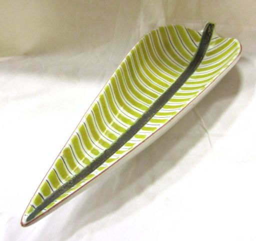 Stig Lindbergs lövformade skålar är ju väldigt fina. Denna känns fräsch med sitt mörkgröna streck mitt i. Grönt är ju en riktig trendfärg dessutom. Signerad från Gustavsbergs Studio.