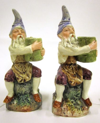 Ljusstakarna var nog kanske inte menade som julpynt men det är ju också tomtar! Med stora ölsejdlar! Kan vara tyska och är också från slutet av 1800-talet.