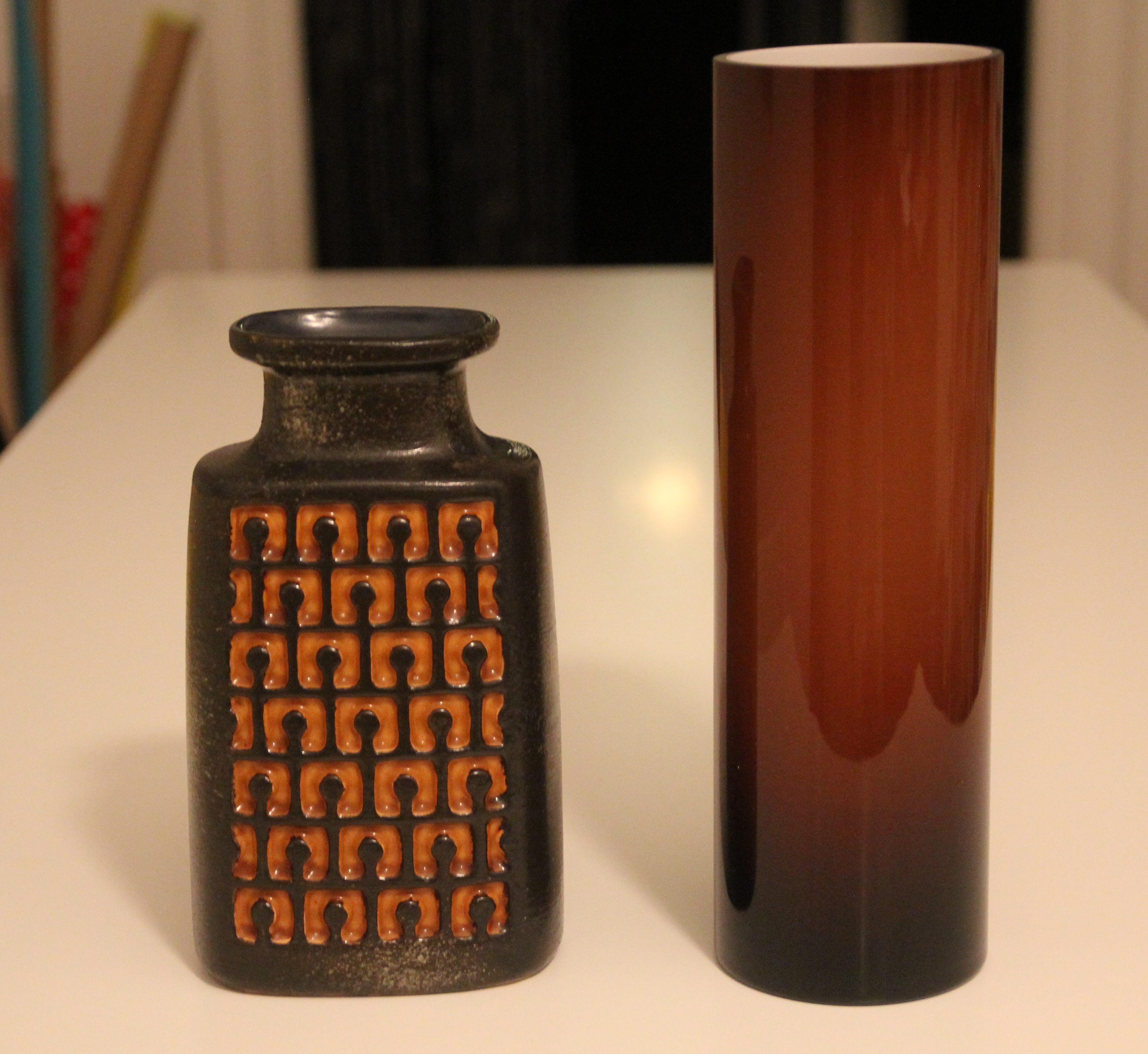 En tysk keramikvas med beteckningen 3090/B. Ganska vanlig. Någon av er därute vet säkert mer om serien. Kommer kanske att börja samla på den. Tycker att mönstret är tilltalande. Tillägg: Vasen kommer från Haldensleben Keramik i forna Östtyskland.