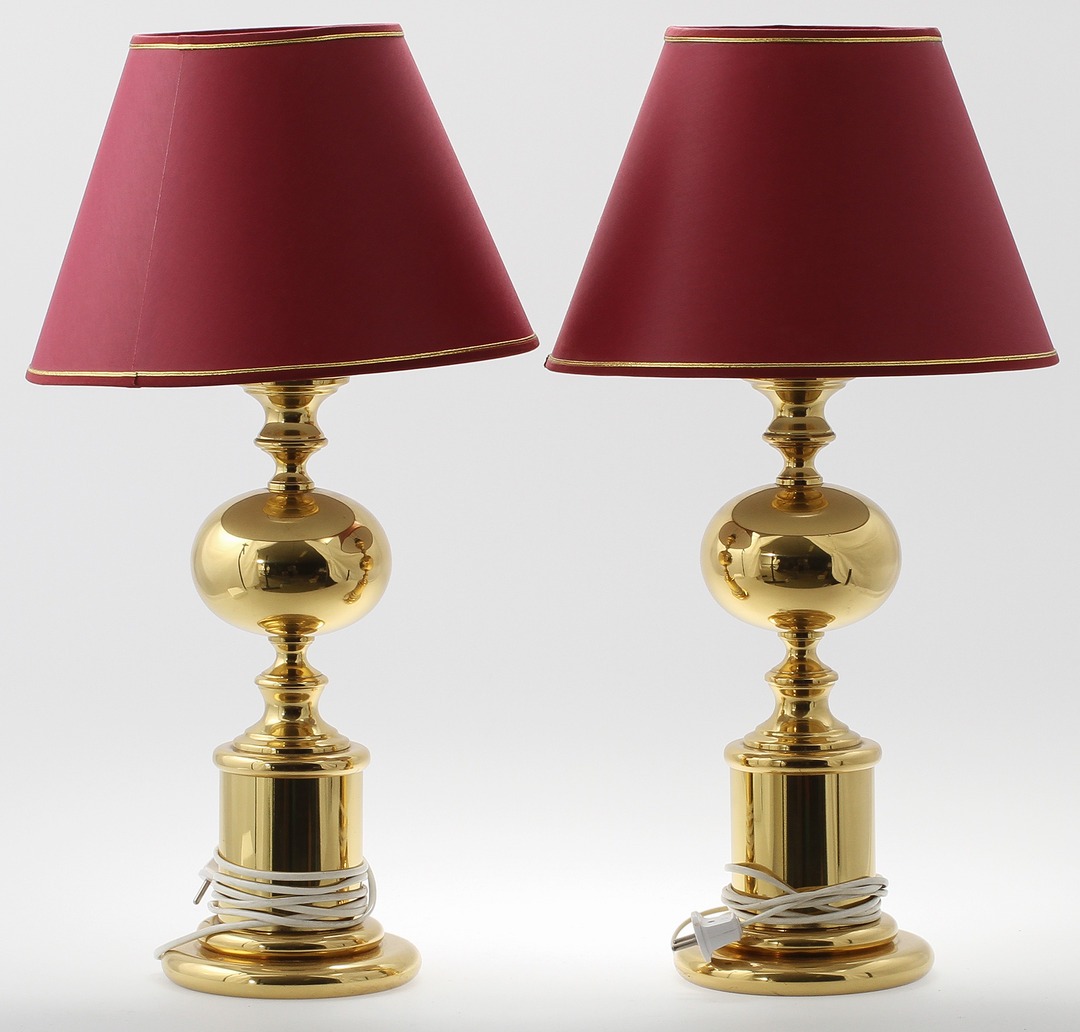 Väldigt snygga lampfötter i mässing. Grymma. Men glöm lampskärmarna. Horribla. Släng dem och skaffa snyggare. Förresten finns det någon som tillverkar nya lampskärmar i retrostil? Någon som vet? Det är ju inte lätt att hitta på loppis längre. Någon har bjudit 350 kr (2 maj).