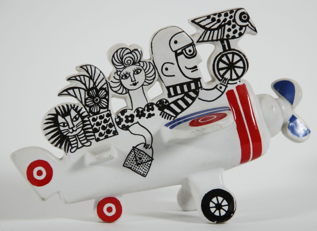Här är Lisa Larsons flygplan ur serien Traffic för Gustavsberg. Serien är populär och budnivån har nått 4100 kr. Även elefanten ur samma serie är till salu.