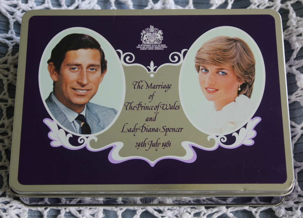 Burk från chokladtillverkaren Cadbury´s. Minne från Prins Charles och Dianas bröllop 1981. Vacker eller hur 😉 Som sagt, älskar kitsch!