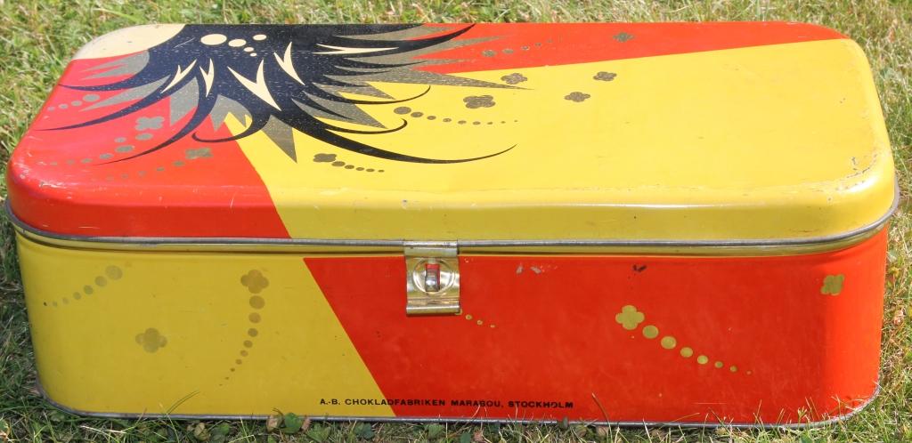 Köpte en plåtlåda från Marabou. Väldigt snygga färger. Stor som ett brödskrin.