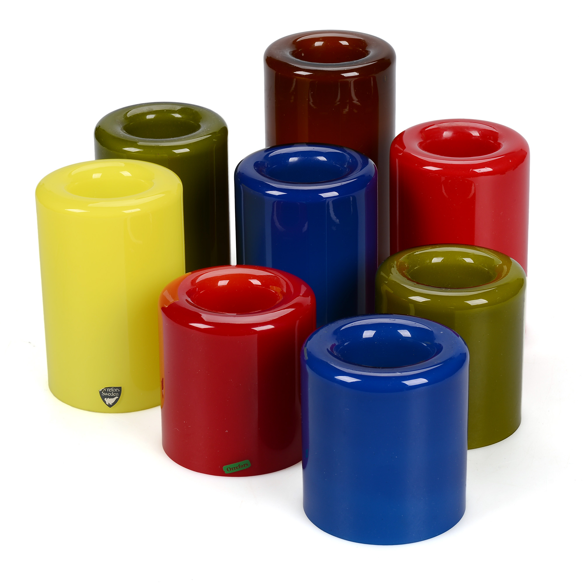 En härlig samling med hela åtta Eternell från Orrefors. De designades av Owe Elvén. Utrop är 1200 kr och någon har bjudit 550 kr. Flera sådana här poster bjuds ut. Är det någon som vet under vilken period dessa såldes? Kan det vara 80-tal?