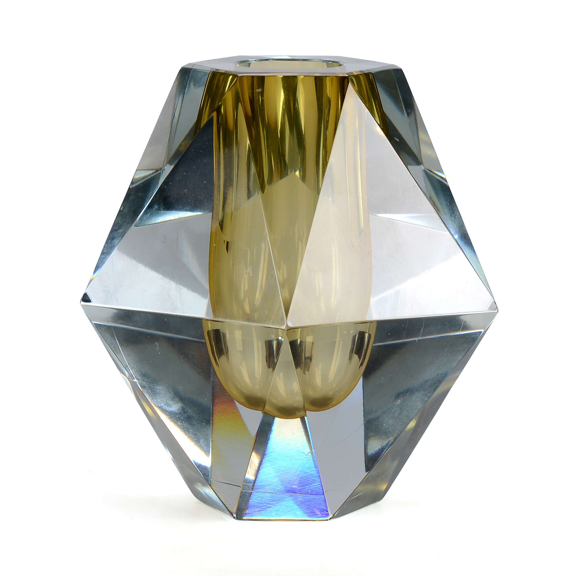 Fin glasvas från 1900-talets andra hälft. Den heter passande nog Diamant av Asta Strömberg för Strömbergshyttan. Den är 13 cm hög. Buden är på 200 kr just nu.