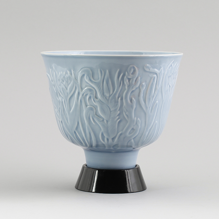 Fin skål av Carl Harry Stålhane för Rörstrand. Gillar färgkombon, ljusblått o svart.