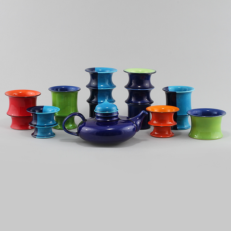 Slutligen Inger Perssons fett schyssta keramik Pop från Rörstrand. En tekanna och 8 vaser/skålar. Tekannan lanserades 1968 och följande delar åren efter. Så färgstarkt! Bilden gör inte sakerna rättvisa!