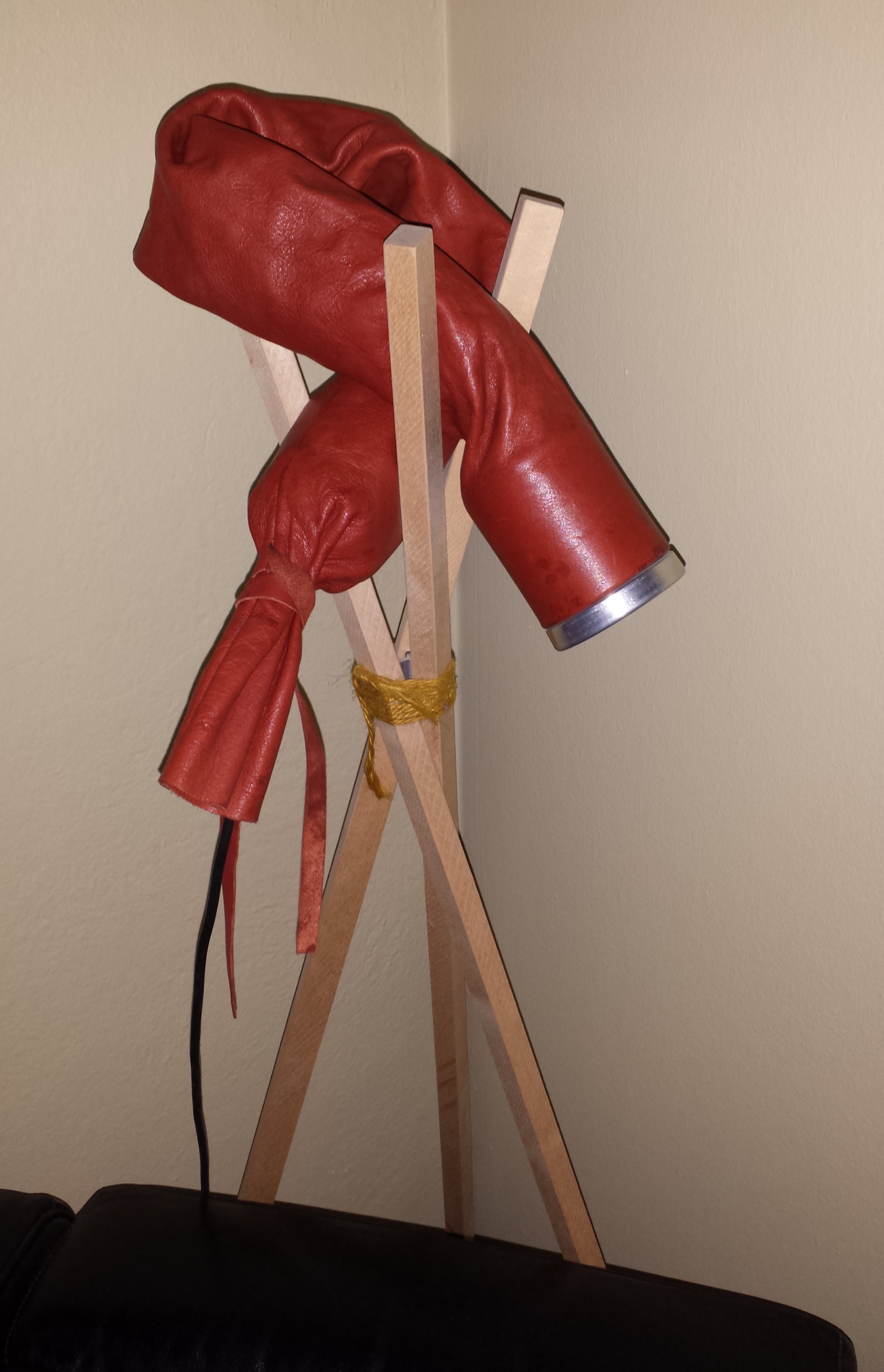 Lampan var då det begav sig också populär att hänga över en spegel exempelvis, dvs att man helt enkelt tog bort benställningen. Det fanns även ett snöre som tillhörde med vilket man omvandlade Larven till taklampa. Har även detta snöre kvar. Bara så ni vet. Saknar dock originalkartongen tyvärr. Den låg på vinden i många år men är nu slängd. Det är ju ett minus förstås.