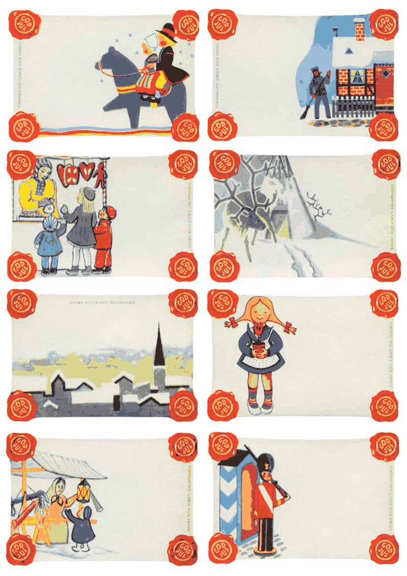 1. Mamma hade alltid dessa etiketter när jag var liten. Jag minns att jag brukade sitta och titta på de fina motiven och längta till julafton. Kanske jag måste köpa och spara dom, tror inte jag skulle nämnas avvända dom 🙂
