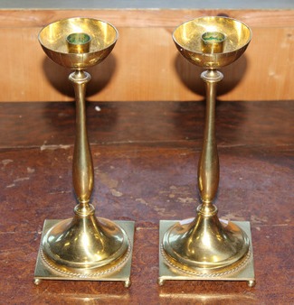 De här lite mer klassiska mässingsljusstakarna är också från Ystad Metall och designade av Gunnar Ander. Ganska stiliga och utropet är 400 kr.