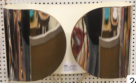 Här har vi en vägglampa ”sannolikt från Italien” som det står i katalogen. Typiskt 70-tal. Ganska läcker med sin förkromning. Utrop 400 kr.