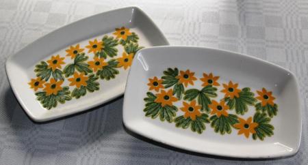 Var på pytteloppis också och köpte två fat för 4 kr. Användningsområdet är väl oklart. Kakfat? Större askfat? Assietter? Eller? Det är i alla fall norska fat från Stavangerflint märkta May av Inger Waage. Hon arbetade på Stavangerflint 1953-79 och verkar ha varit produktiv och välkänd. Så här såg hon ut: