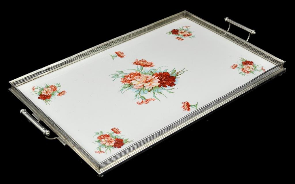 En riktig sommarbricka i porslin och vitmetall. Ett måste i varje torp! (500 kr).