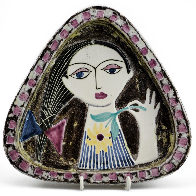 Ett fint fat av Mari Simmulson från Upsala-Ekeby. Ganska typisk dekor! (300 kr).