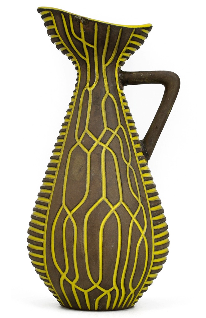 Vas från Upsala-Ekeby. Den heter Lian och tillverkades 1958-60. Ingen har bjudit ännu men det verkar som den är lagad. Annars är den ju väldigt fin!