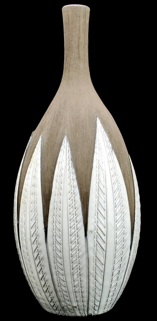 En riktigt snygg golvvas 46 cm hög. Den är förstås av Mari Simmulson och från Uppsala Ekeby. Namnet på serien är… Ja vad heter den? Nu står det alldeles still i huvudet! Högsta bud just nu är 750 kr och utrop 1000 kr (5 juli).