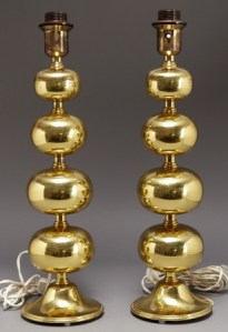 Två bordslampor i mässing. Mycket trendig modell! Från 60-70-talet. Nån är beredd att betala 1000 kr (SAV 12 okt). Problemet är som vanligt att hitta schyssta skärmar.