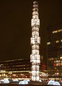 Den 130 ton tunga glasobelisken invigdes 1974. Enligt Edvin Öhrströms ursprungliga intentioner skulle obelisken belysas inifrån. En sådan belysning installerades först 1993. Men ljuste är ganska svagt tycker jag och den är konstant smutsig. Trots det har jag börjat gilla den!