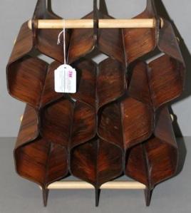 Ett snyggt vinställ i palisander. Mycket snyggt till och med. Utrop 150 kr. Är det någon som vet vem som formgivit det?