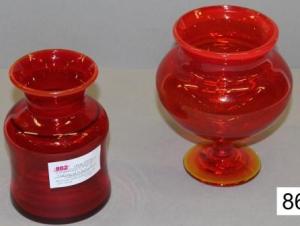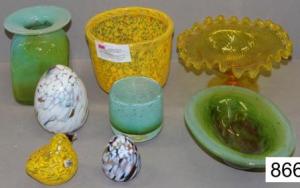 Två snygga vaser från Boda av Erik Höglund. Härliga färger! Utrop 200 kr. På den andra bilden är det inga särskilt märkvärdiga föremål men det är väl ett härligt påskstilleben?! Det är bl a Boda och Ekenäs och utropet är 200 kr.