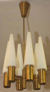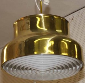 Till sist en schysst taklampa i mässing med koniska glaskupor. Eller är Bumlingen för Ateljé Lyktan i mässing bättre?! Inget utropspris på någondera av dem.