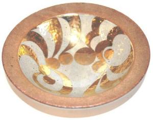 En unik skål med gulddekor för Gustavsbergs Studio av Lisa Larson. Skålen har en diameter 19 cm och utropet är 1000 kr.