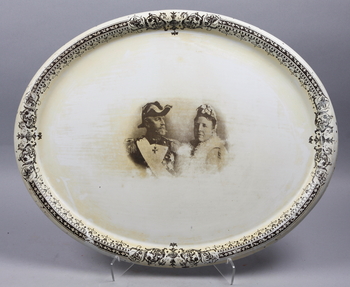 1. En ovanlig plåtbricka i så måtto att den är vit! Snyggt! Passar bra i den kungliga bröllopsyran. Bilden föreställer kung Oscar II och drottning Josefina. På köpet får man en svart plåtbricka också. Högsta bud just nu är 750 kr (7 mars).