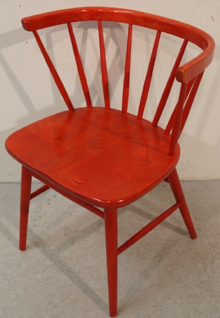 En röd retropinnstol. Lyser upp som skrivbordsstol kanske. Eller i vilket tråkigt hörn som helst. Högsta bud just nu 125 kr.